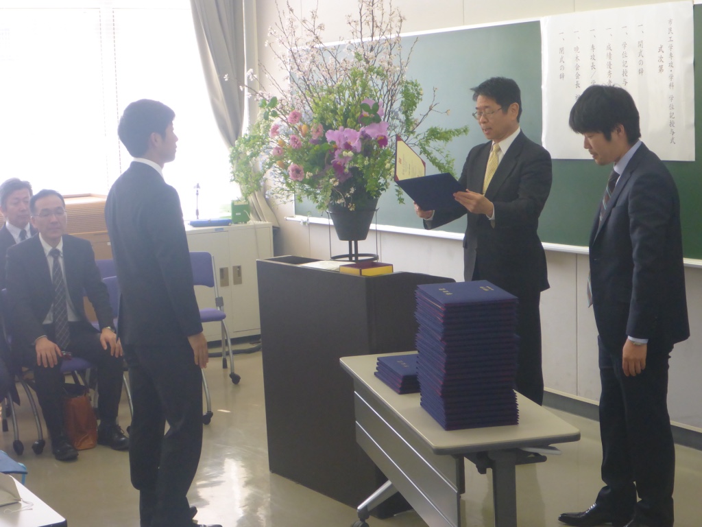 学部卒業式と大学院修了式が行われ,内山研からは院生2名と学部生2名が卒業しました.