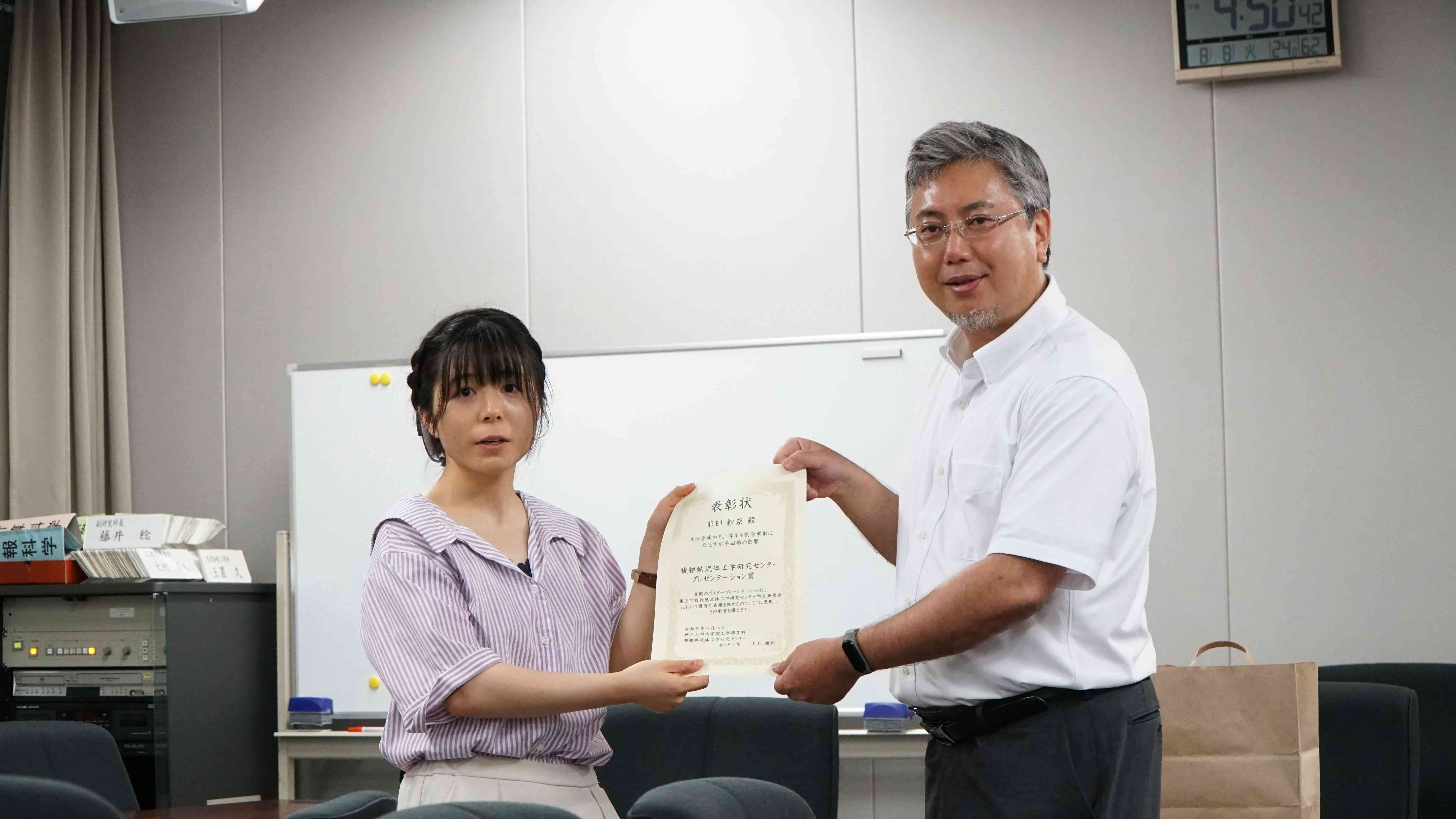 | 25 | 機械工学 | M2 | 前田 紗奈 | 液体金属中を上昇する気泡挙動に及ぼす水平磁場の影響 |