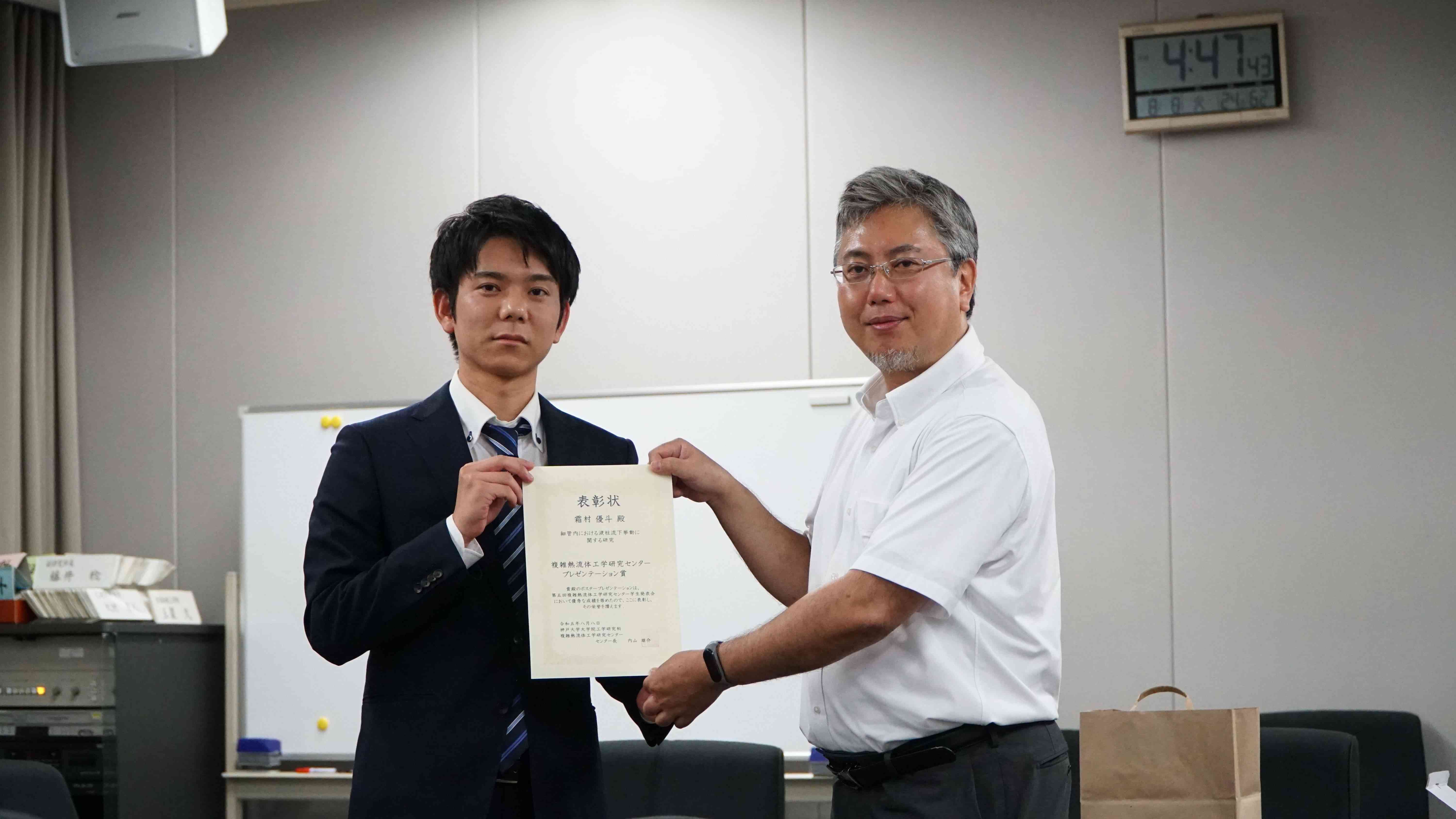 | 20 | 応用化学 | M2 | 霜村 優斗 | 細管内における液柱流下挙動に関する研究 |