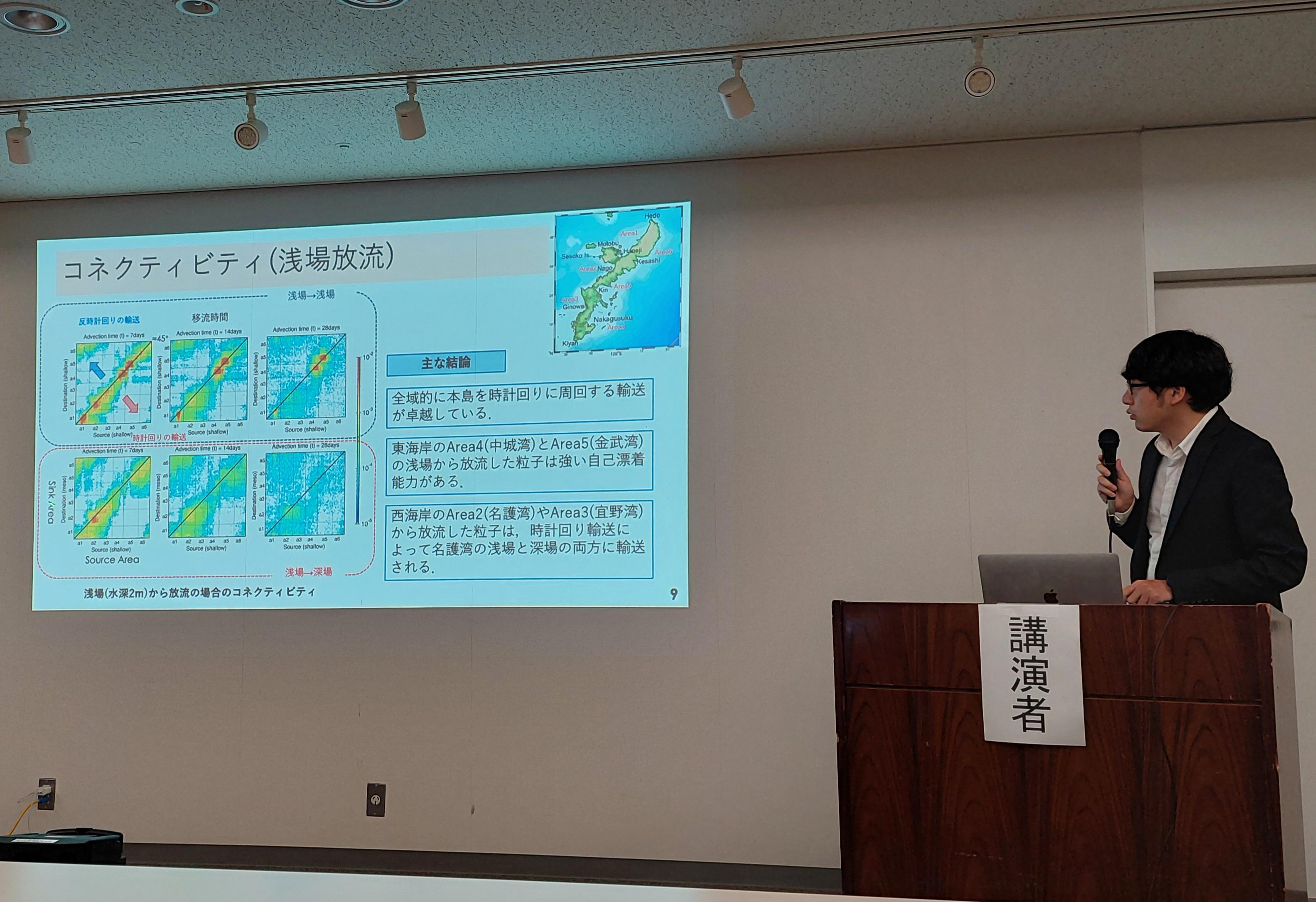 - 張先輩の発表「沖縄本島沿岸域におけるサンゴ浮遊幼生の3次元輸送特性に関する研究」
