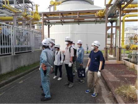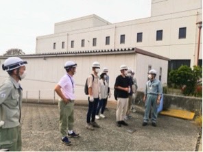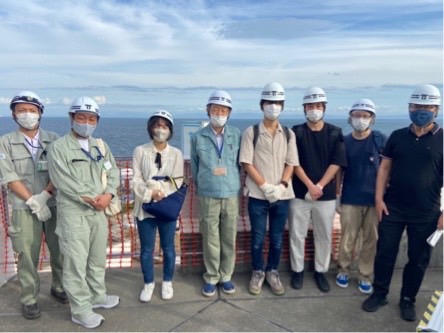 最後に職員の方と、瀬戸内海を背景に記念撮影を行いました。普段なかなか見ることの出来ない処理場の内部の施設について、詳細に理解することが出来ました。