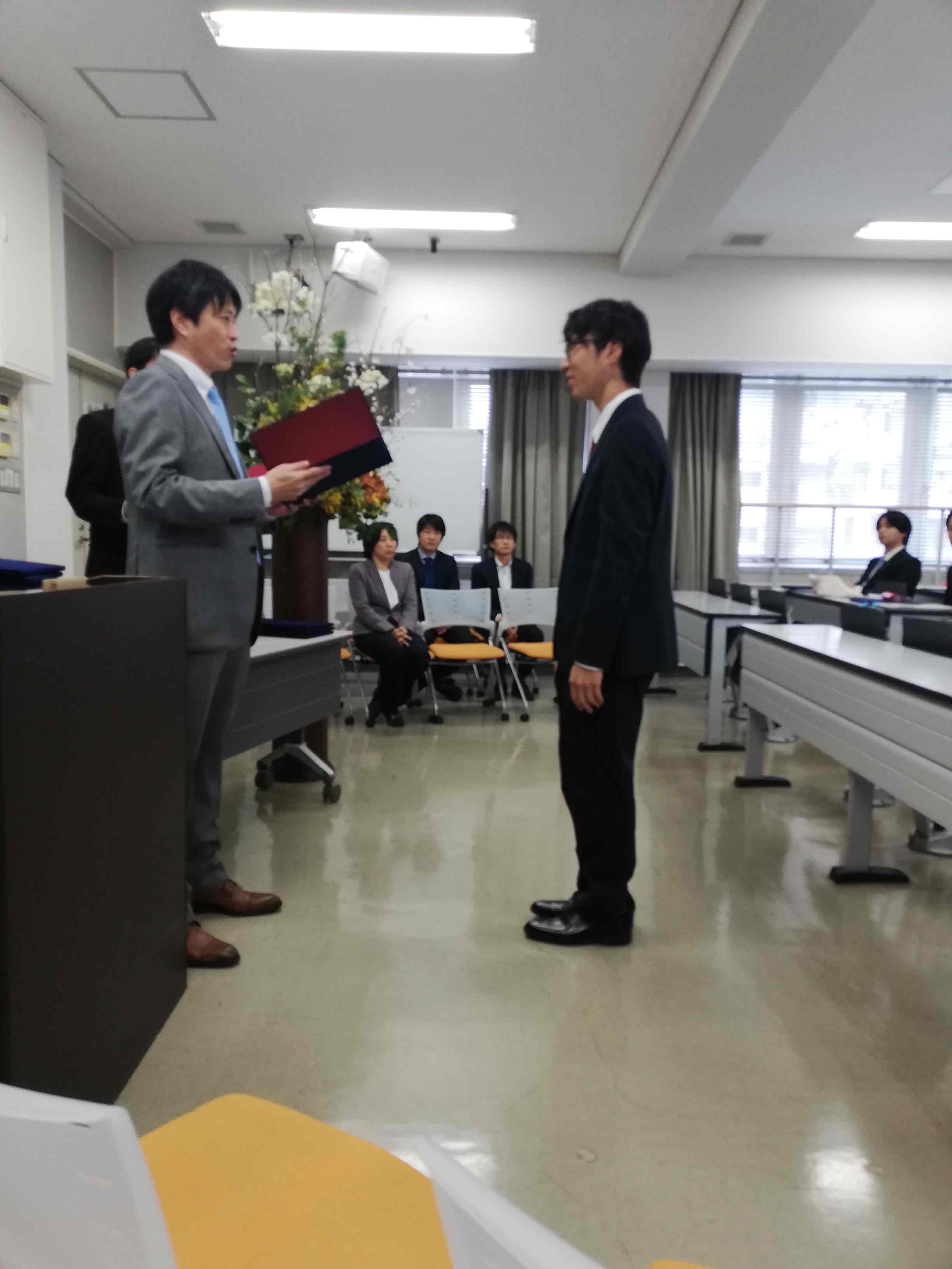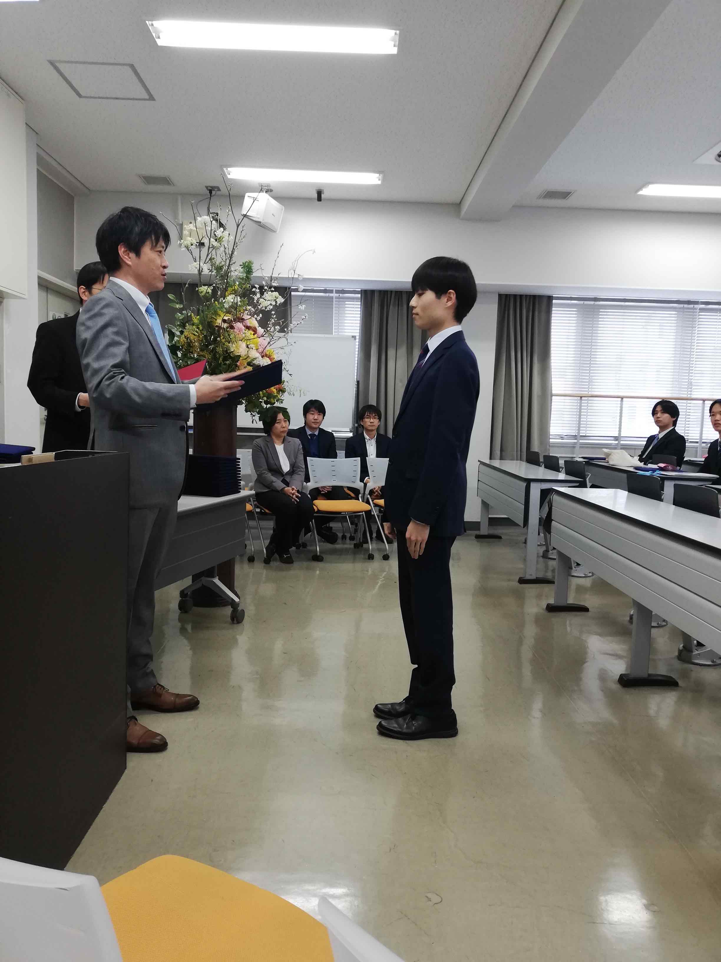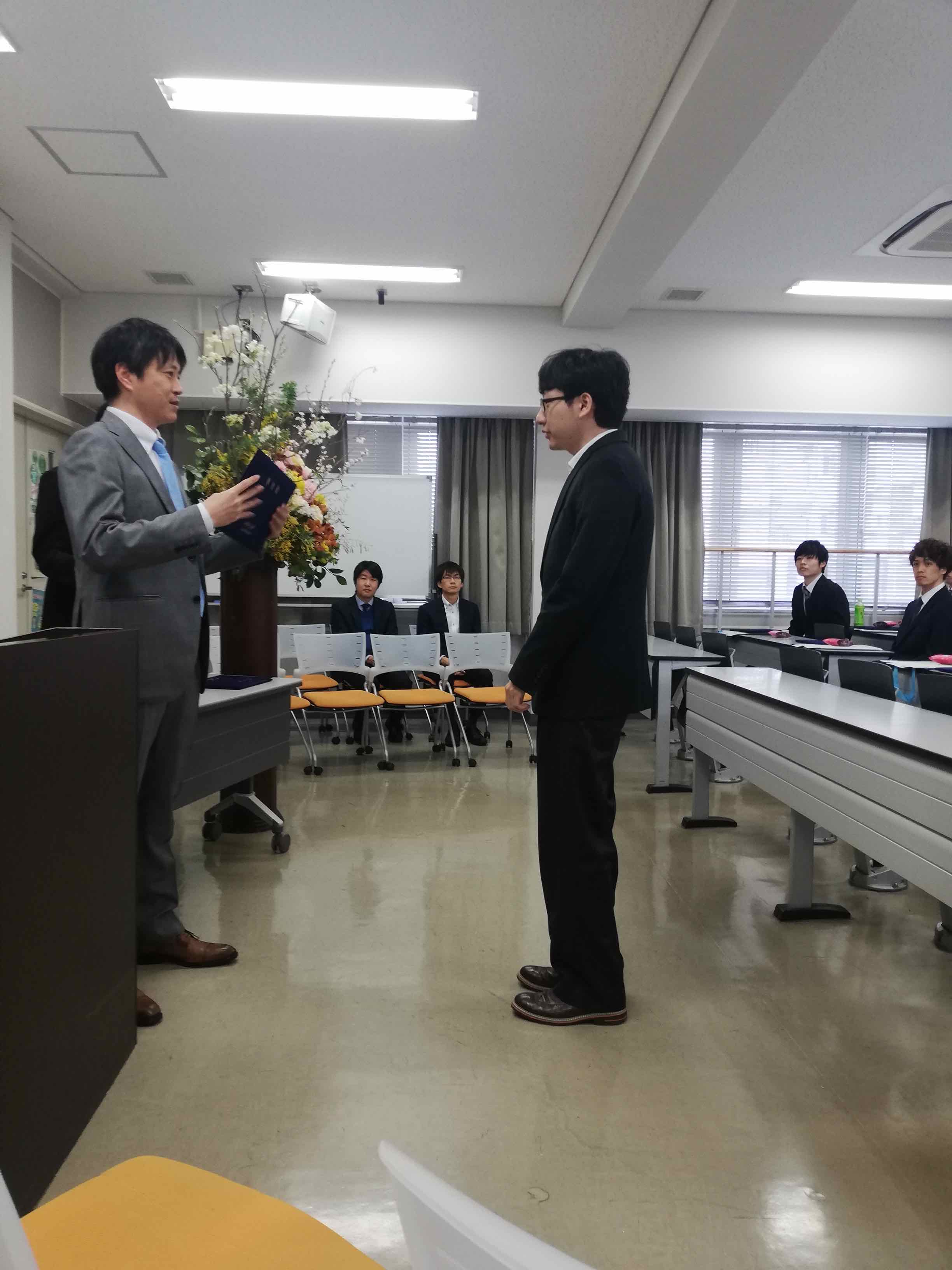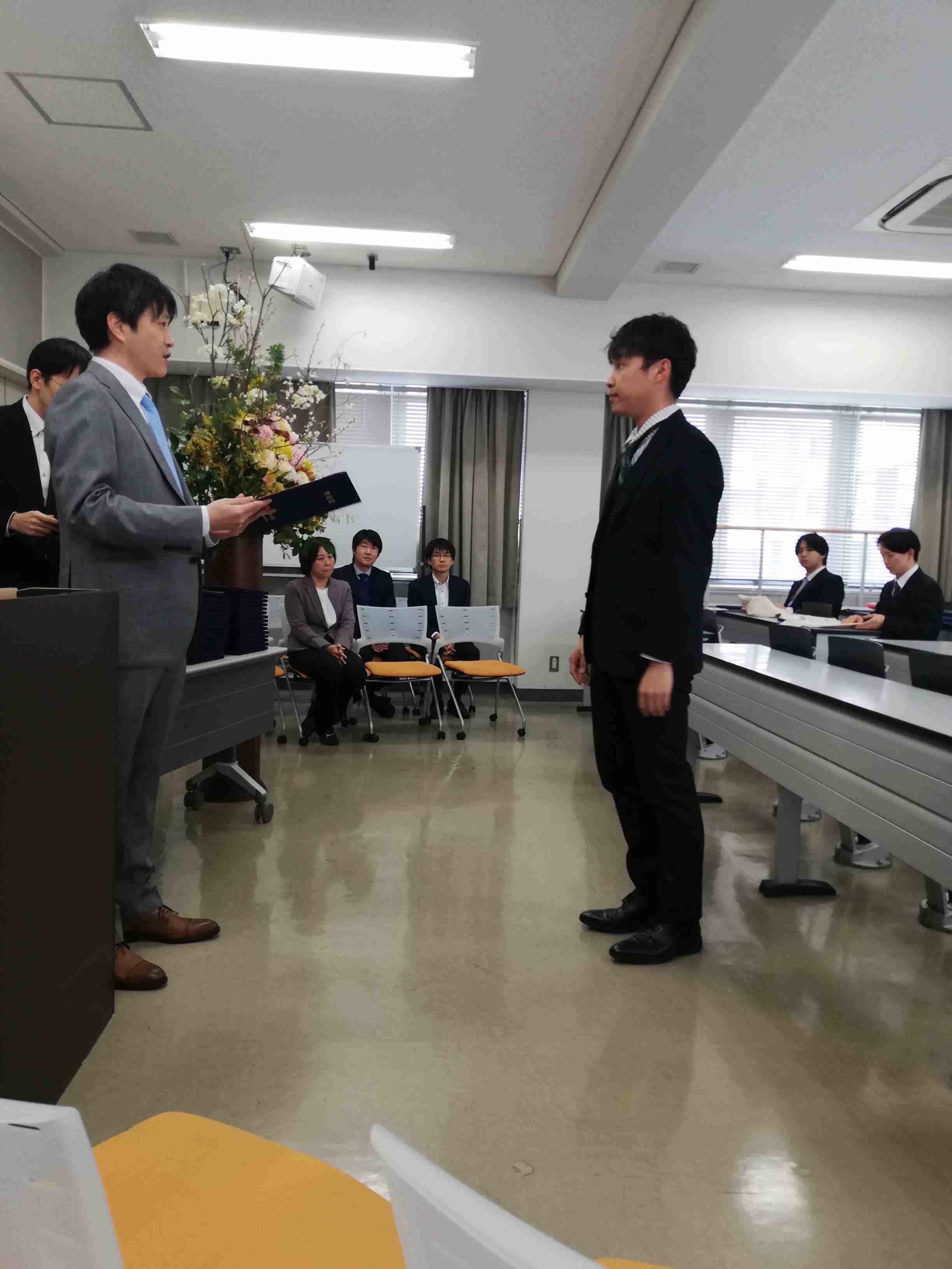 B4清水君。唯一の就職組。大阪市で頑張ってください。