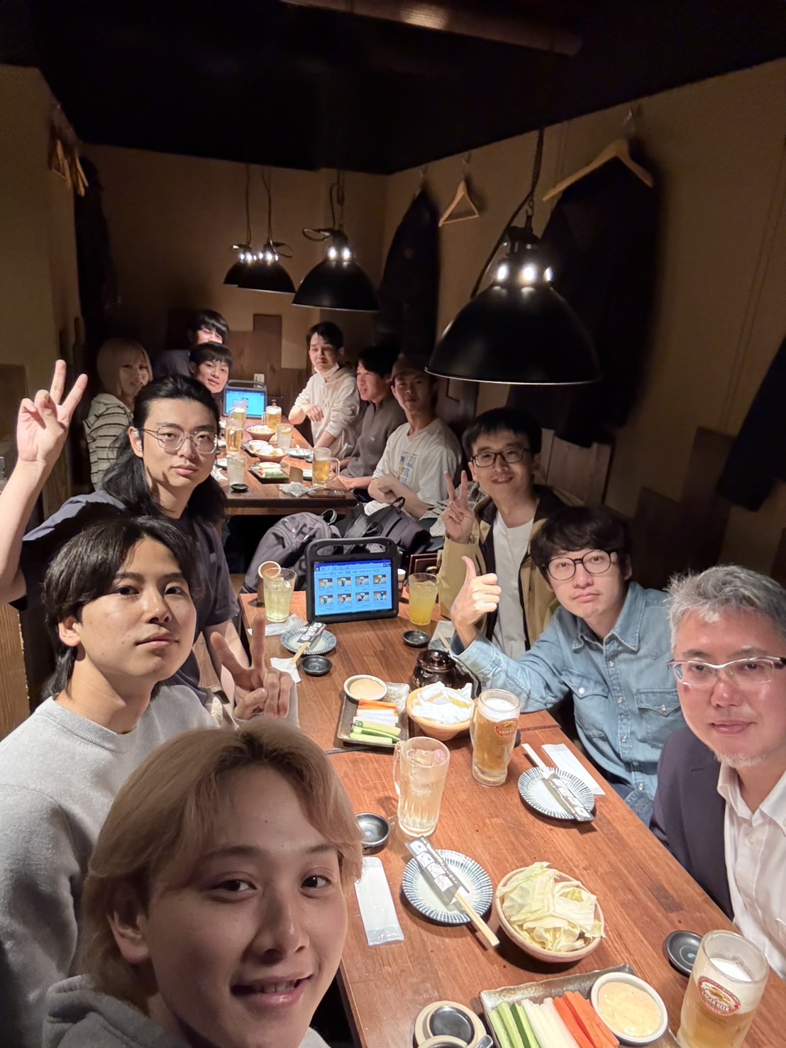 歓迎会終わり. お酒を飲みながらみなさんと打ち解けられました!